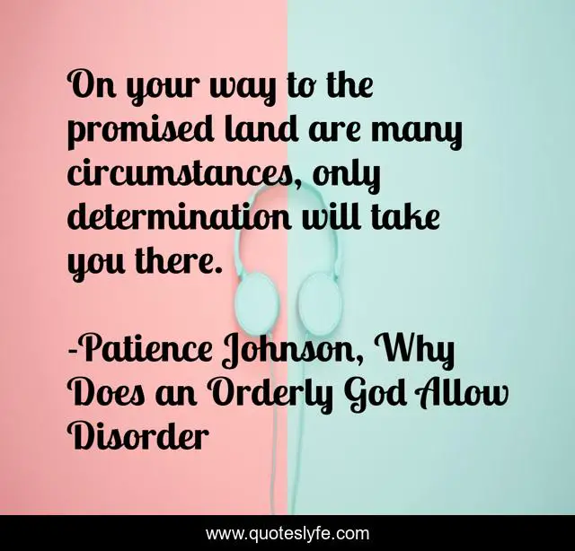 "Patience Johnson, Why Does an Orderly God Allow Disorder Quotes." Quoteslyfe.com, 2025. Sun. 07 Dec. 2025. <https://www.quoteslyfe.com/quote/On-your-way-to-the-promised-land-83437>.