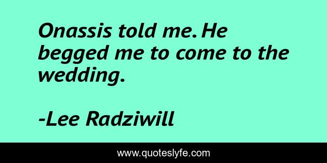 This page presents the quote "Onassis told me. He begged me to come to the wedding.". Author of this quote is Lee Radziwill. This quote is about me, come, he,.