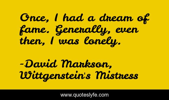 This page presents the quote "Once, I had a dream of fame. Generally, even then, I was lonely.". Author of this quote is David Markson, Wittgenstein's Mistress. .