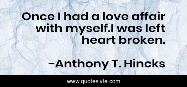 This page presents the quote "Once I had a love affair with myself.I was left heart broken.". Author of this quote is Anthony T. Hincks. This quote is about heart, life, love, affair, philosophy, myself, broken, love-affair, affection,.