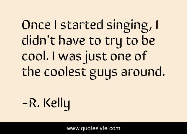 This page presents the quote "Once I started singing, I didn't have to try to be cool. I was just one of the coolest guys around.". Author of this quote is R. Kelly. This quote is about try, started, singing,.