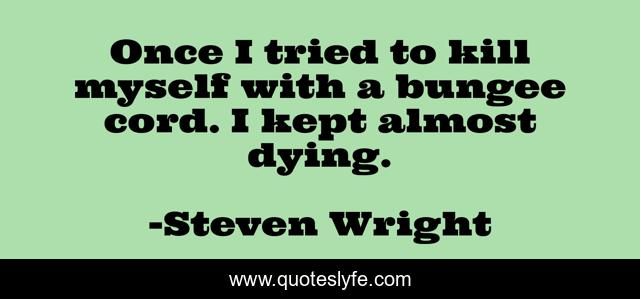 This page presents the quote "Once I tried to kill myself with a bungee cord. I kept almost dying.". Author of this quote is Steven Wright. This quote is about suicide, bungee-cords, humour,.