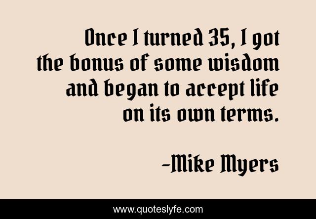 This page presents the quote "Once I turned 35, I got the bonus of some wisdom and began to accept life on its own terms.". Author of this quote is Mike Myers. This quote is about life, accept, once,.