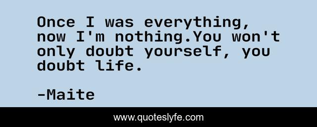 This page presents the quote "Once I was everything, now I'm nothing.You won't only doubt yourself, you doubt life.". Author of this quote is Maite. This quote is about loneliness, life, doubt, sadness,.