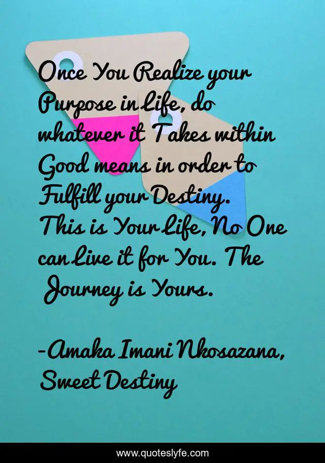 "Amaka Imani Nkosazana, Sweet Destiny Quotes." Quoteslyfe.com, 2025. Sat. 06 Dec. 2025. <https://www.quoteslyfe.com/quote/Once-You-Realize-your-Purpose-in-Life-105563>.