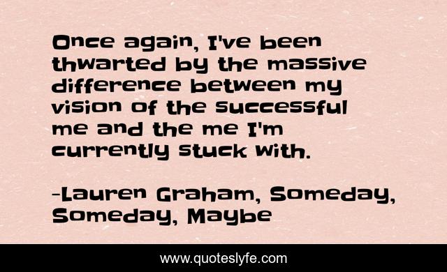 This page presents the quote "Once again, I've been thwarted by the massive difference between my vision of the successful me and the me I'm currently stuck with.". Author of this quote is Lauren Graham, Someday, Someday, Maybe. .