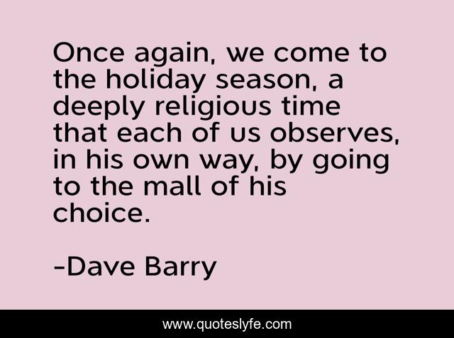 This page presents the quote "Once again, we come to the holiday season, a deeply religious time that each of us observes, in his own way, by going to the mall of his choice.". Author of this quote is Dave Barry. This quote is about humor, christmas,.
