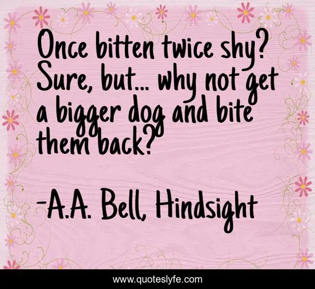 "A.A. Bell, Hindsight Quotes." Quoteslyfe.com, 2025. Fri. 05 Dec. 2025. <https://www.quoteslyfe.com/quote/Once-bitten-twice-shy-Sure-but-why-81898>.