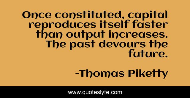 This page presents the quote "Once constituted, capital reproduces itself faster than output increases. The past devours the future.". Author of this quote is Thomas Piketty. .