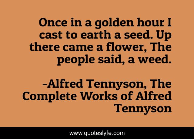 This page presents the quote "Once in a golden hour I cast to earth a seed. Up there came a flower, The people said, a weed.". Author of this quote is Alfred Tennyson, The Complete Works of Alfred Tennyson. This quote is about criticism, judgement, poetry,.