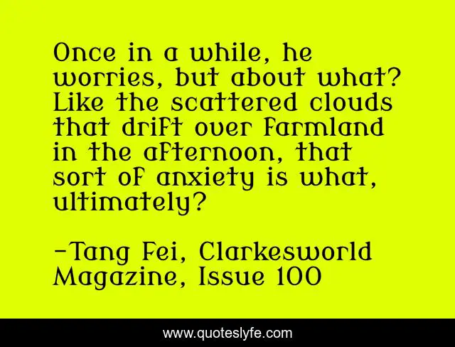 "Tang Fei, Clarkesworld Magazine, Issue 100 Quotes." Quoteslyfe.com, 2025. Fri. 05 Dec. 2025. <https://www.quoteslyfe.com/quote/Once-in-a-while-he-worries-but-196329>.
