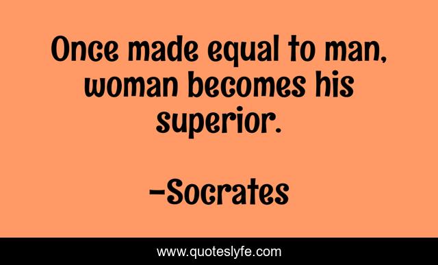 This page presents the quote "Once made equal to man, woman becomes his superior.". Author of this quote is Socrates. This quote is about equality, superiority, women,.