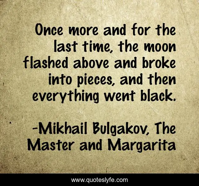 This page presents the quote "Once more and for the last time, the moon flashed above and broke into pieces, and then everything went black.". Author of this quote is Mikhail Bulgakov, The Master and Margarita. .