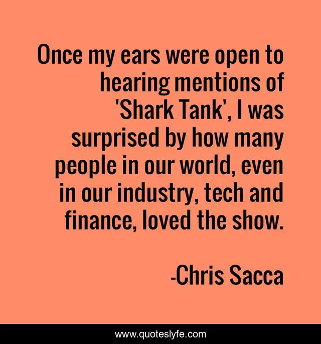 This page presents the quote "Once my ears were open to hearing mentions of 'Shark Tank', I was surprised by how many people in our world, even in our industry, tech and finance, loved the show.". Author of this quote is Chris Sacca. This quote is about world, people, loved,.