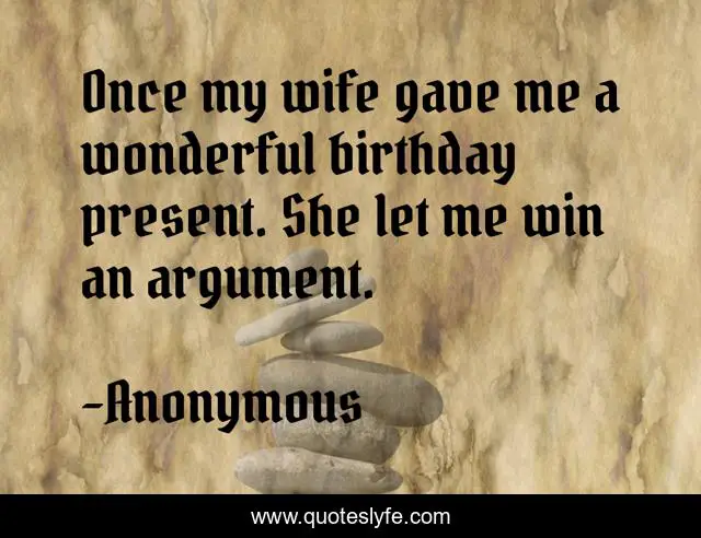 This page presents the quote "Once my wife gave me a wonderful birthday present. She let me win an argument.". Author of this quote is Anonymous. This quote is about age, birthdays,.