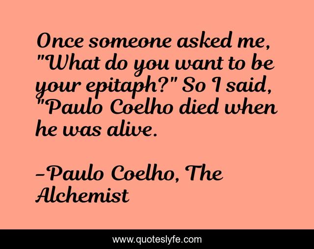 This page presents the quote "Once someone asked me, "What do you want to be your epitaph?" So I said, "Paulo Coelho died when he was alive.". Author of this quote is Paulo Coelho, The Alchemist. This quote is about life, death, humanity, philosophy,.
