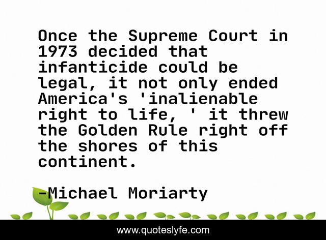 This page presents the quote "Once the Supreme Court in 1973 decided that infanticide could be legal, it not only ended America's 'inalienable right to life, ' it threw the Golden Rule right off the shores of this continent.". Author of this quote is Michael Moriarty. This quote is about life, america, right,.