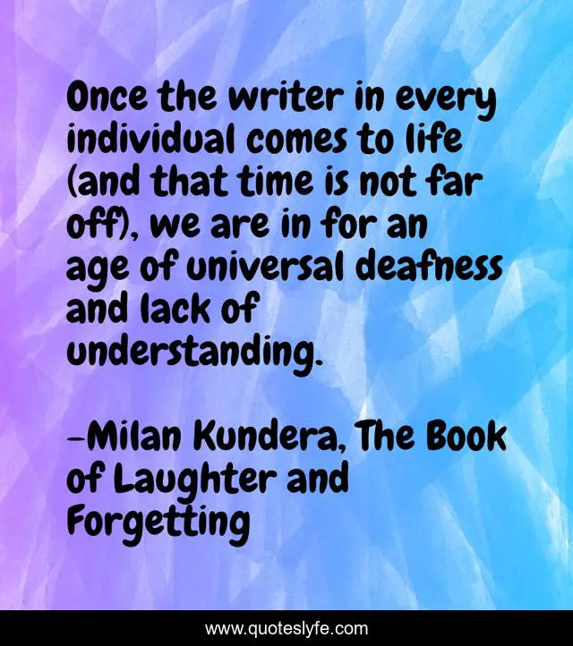 This page presents the quote "Once the writer in every individual comes to life (and that time is not far off), we are in for an age of universal deafness and lack of understanding.". Author of this quote is Milan Kundera, The Book of Laughter and Forgetting. This quote is about kundera, prophetic, wisdom, writing,.
