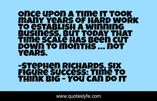 "Stephen Richards, Six Figure Success: Time To Think Big - You Can Do It Quotes." Quoteslyfe.com, 2025. Sat. 06 Dec. 2025. <https://www.quoteslyfe.com/quote/Once-upon-a-time-it-took-many-78085>.