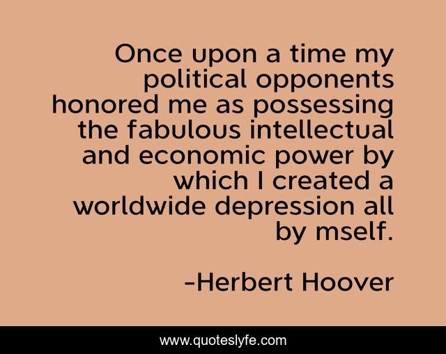 This page presents the quote "Once upon a time my political opponents honored me as possessing the fabulous intellectual and economic power by which I created a worldwide depression all by mself.". Author of this quote is Herbert Hoover. .