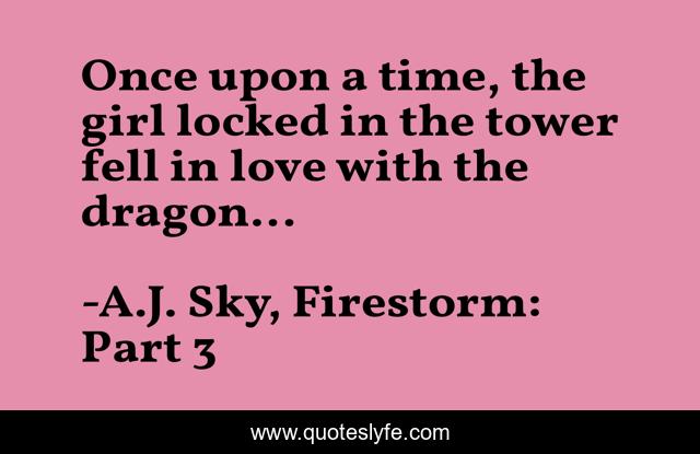 This page presents the quote "Once upon a time, the girl locked in the tower fell in love with the dragon...". Author of this quote is A.J. Sky, Firestorm: Part 3. This quote is about dragon-rider, ember-dare, dragon, storm-breathers, fantasy-fiction, stormbreathers,.