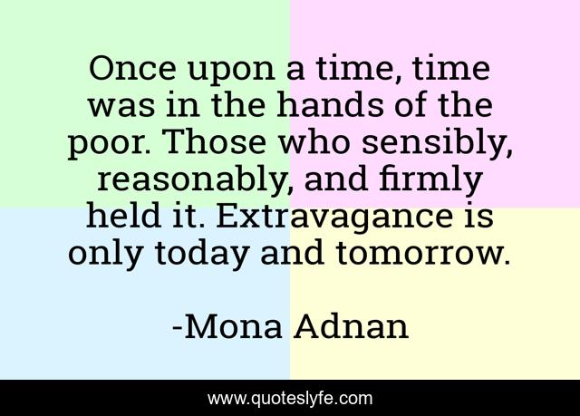 This page presents the quote "Once upon a time, time was in the hands of the poor. Those who sensibly, reasonably, and firmly held it. Extravagance is only today and tomorrow.". Author of this quote is Mona Adnan. This quote is about time-management, efficiently,.
