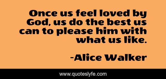 This page presents the quote "Once us feel loved by God, us do the best us can to please him with what us like.". Author of this quote is Alice Walker. This quote is about religion, acceptance, love, affection,.