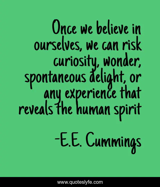This page presents the quote "Once we believe in ourselves, we can risk curiosity, wonder, spontaneous delight, or any experience that reveals the human spirit". Author of this quote is E.E. Cummings. This quote is about self-acceptance, self-confidence,.