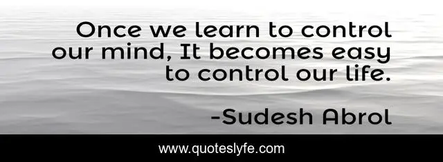 This page presents the quote "Once we learn to control our mind, It becomes easy to control our life.". Author of this quote is Sudesh Abrol. This quote is about inspirational-book, self-development,.