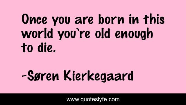 This page presents the quote "Once you are born in this world you’re old enough to die.". Author of this quote is Søren Kierkegaard. .