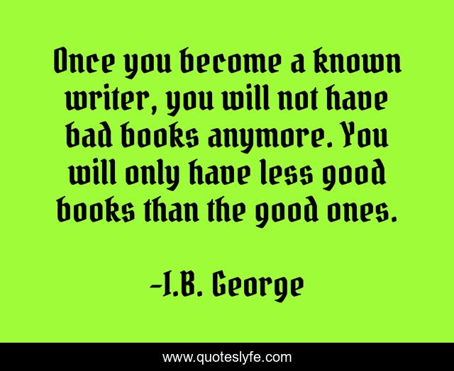 This page presents the quote "Once you become a known writer, you will not have bad books anymore. You will only have less good books than the good ones.". Author of this quote is I.B. George. This quote is about fantasy, author, quotes, fantasy-books, fantasy-young-adult,.