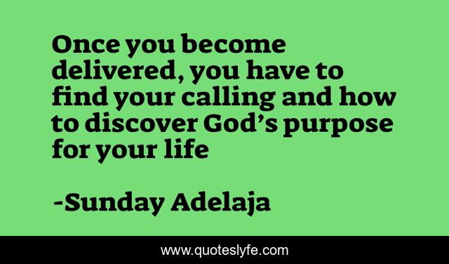 This page presents the quote "Once you become delivered, you have to find your calling and how to discover God’s purpose for your life". Author of this quote is Sunday Adelaja. This quote is about life, blessing, discovering-purpose, money, work, finance, calling, deliverance, intentional-living,.