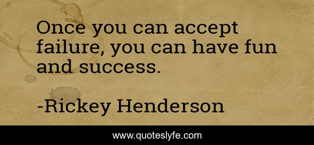 This page presents the quote "Once you can accept failure, you can have fun and success.". Author of this quote is Rickey Henderson. This quote is about fun, success,.