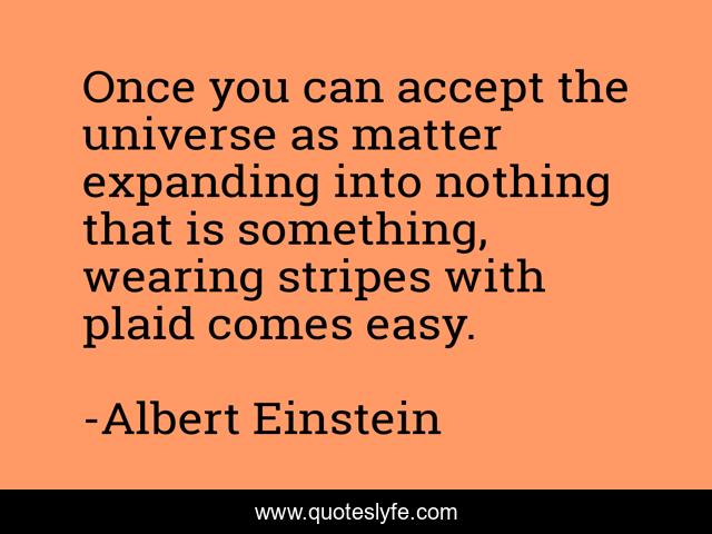 This page presents the quote "Once you can accept the universe as matter expanding into nothing that is something, wearing stripes with plaid comes easy.". Author of this quote is Albert Einstein. This quote is about funny, comedy,.