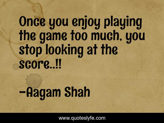 This page presents the quote "Once you enjoy playing the game too much, you stop looking at the score..!!". Author of this quote is Aagam Shah. This quote is about human-nature, reality-of-life, huamanity, games,.