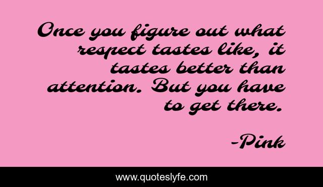 This page presents the quote "Once you figure out what respect tastes like, it tastes better than attention. But you have to get there.". Author of this quote is Pink. This quote is about better, attention,.