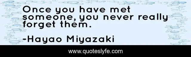 This page presents the quote "Once you have met someone, you never really forget them.". Author of this quote is Hayao Miyazaki. .
