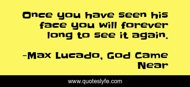This page presents the quote "Once you have seen his face you will forever long to see it again.". Author of this quote is Max Lucado, God Came Near. .