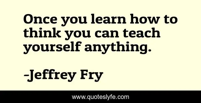 This page presents the quote "Once you learn how to think you can teach yourself anything.". Author of this quote is Jeffrey Fry. This quote is about teach, think, anything, learn,.