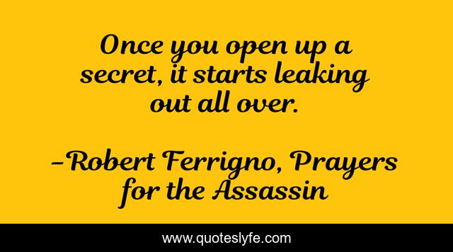 This page presents the quote "Once you open up a secret, it starts leaking out all over.". Author of this quote is Robert Ferrigno, Prayers for the Assassin. .