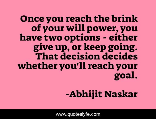Once you reach the brink of your will power, you have two options - either give up, or keep going. That decision decides whether you'll reach your goal.
