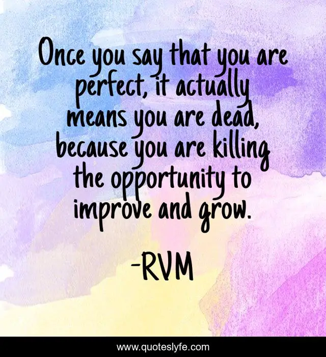 This page presents the quote "Once you say that you are perfect, it actually means you are dead, because you are killing the opportunity to improve and grow.". Author of this quote is RVM. This quote is about motivation, inspiration,.