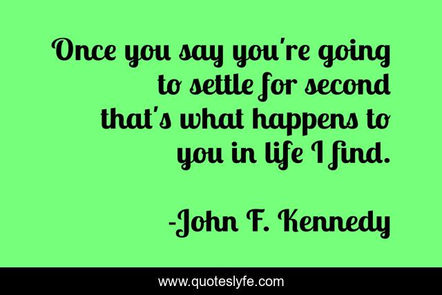 This page presents the quote "Once you say you're going to settle for second that's what happens to you in life I find.". Author of this quote is John F. Kennedy. This quote is about goals, ambition,.