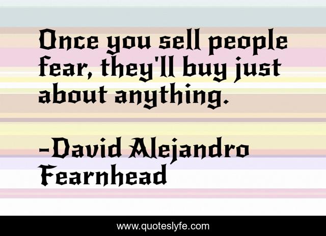 "David Alejandro Fearnhead Quotes." Quoteslyfe.com, 2025. Sat. 06 Dec. 2025. <https://www.quoteslyfe.com/quote/Once-you-sell-people-fear-they-ll-173989>.