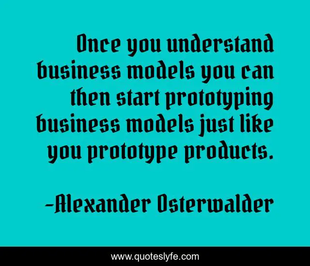 This page presents the quote "Once you understand business models you can then start prototyping business models just like you prototype products.". Author of this quote is Alexander Osterwalder. This quote is about start, products,.