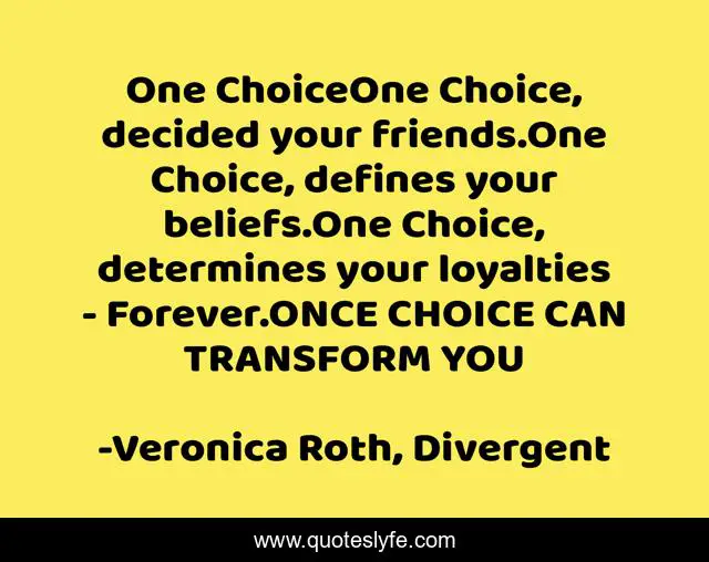 "Veronica Roth, Divergent Quotes." Quoteslyfe.com, 2025. Tue. 09 Dec. 2025. <https://www.quoteslyfe.com/quote/One-ChoiceOne-Choice-decided-your-friends-One-2060>.