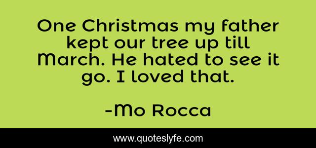 This page presents the quote "One Christmas my father kept our tree up till March. He hated to see it go. I loved that.". Author of this quote is Mo Rocca. This quote is about father, tree, loved,.