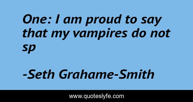This page presents the quote "One: I am proud to say that my vampires do not sp". Author of this quote is Seth Grahame-Smith. This quote is about abrahamlincoln-vampirehunter, vampires,.
