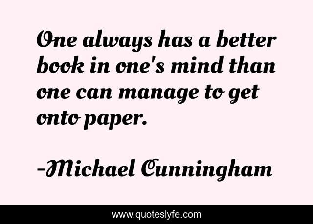 This page presents the quote "One always has a better book in one's mind than one can manage to get onto paper.". Author of this quote is Michael Cunningham. This quote is about life, on-fiction, writing,.