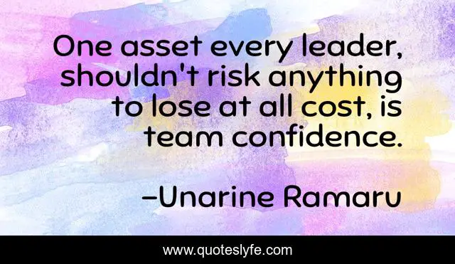 This page presents the quote "One asset every leader, shouldn't risk anything to lose at all cost, is team confidence.". Author of this quote is Unarine Ramaru. This quote is about team-building, confidence, leadership, team-management, team-direction,.